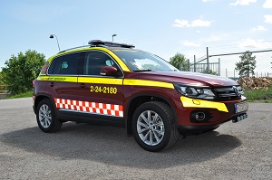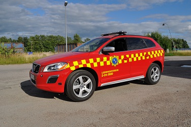 | Befälsbil chef i beredskap. Stripad med battenburg och kontur märkning. Diod blixtljus ramp, front och bak. |