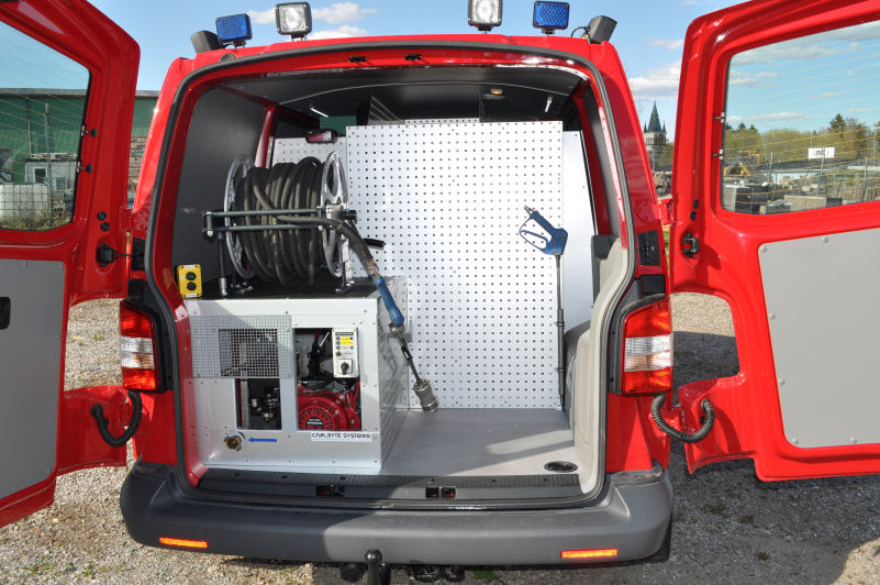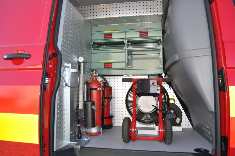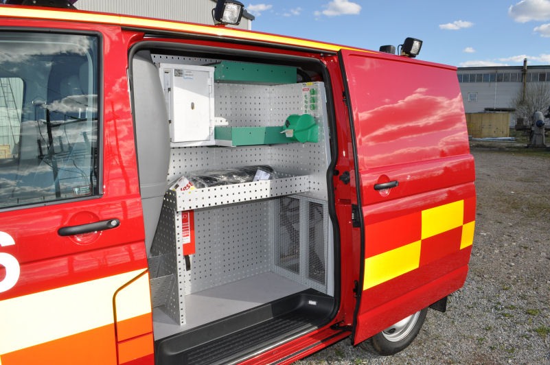 Bakre fack förberett för klipp verktyg. Bilen är utrustad med Fire Express med 300 l vattentank.